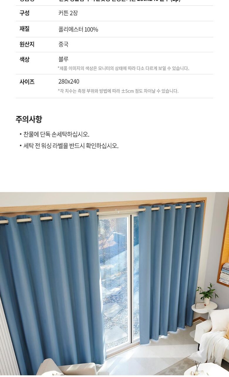 모던하우스 선셋 생활암막 아일렛형 긴창문커튼 280x240 블루 2p BL3625012