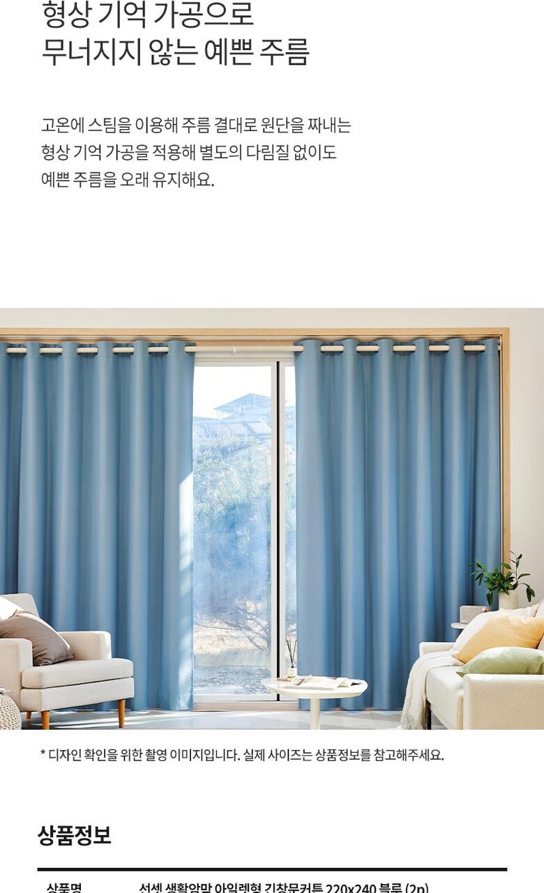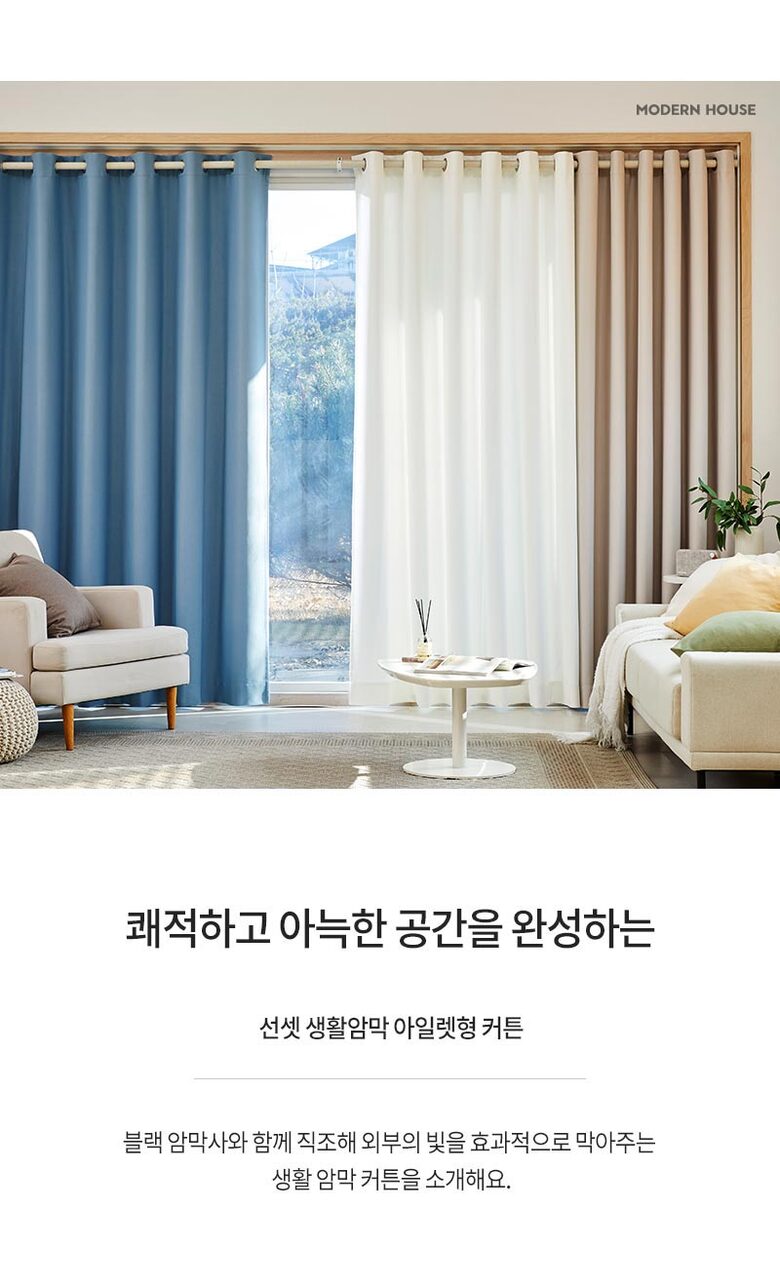 모던하우스 선셋 생활암막 아일렛형 긴창문커튼 220x240 블루 2p BL3625011
