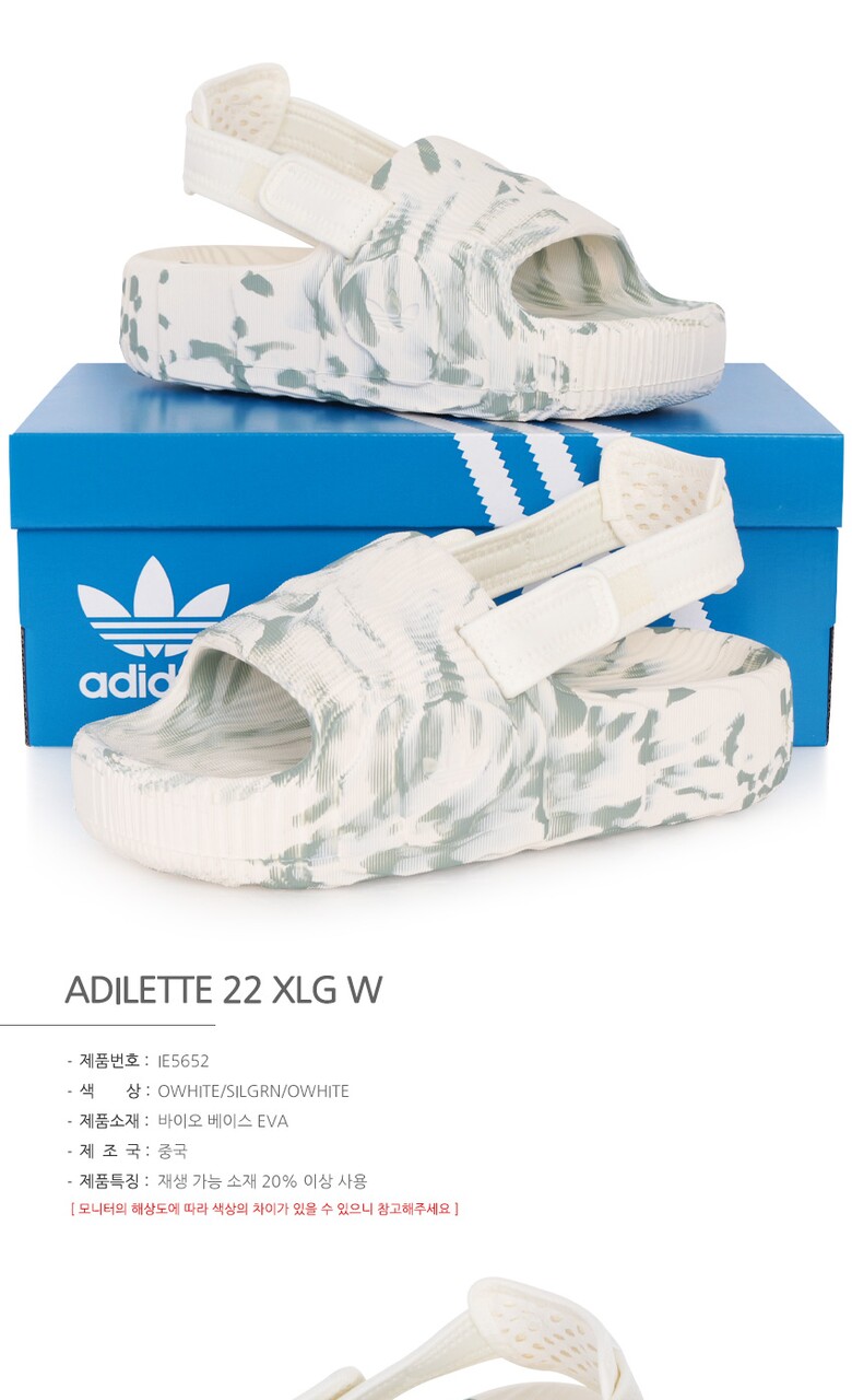 아디다스 오리지널 여성 아딜렛 슬라이드 샌들 슬리퍼 IE5652