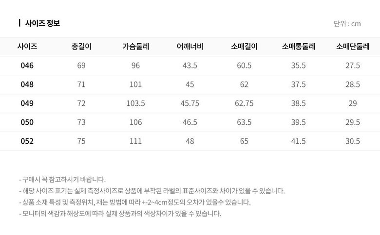 • 처음 배송된 상품상태와 다를 경우(세탁/착용 후 외출하신 경우) 반품이 불가합니다.