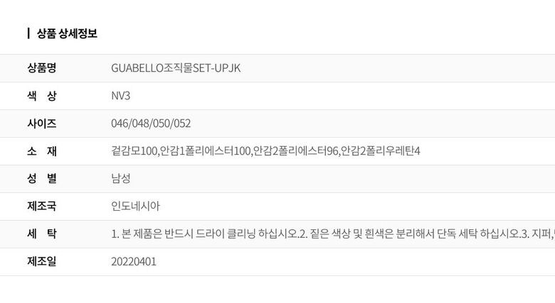 | 6. 세탁방법 및 취급시 주의사항 | 상세설명 참조 |