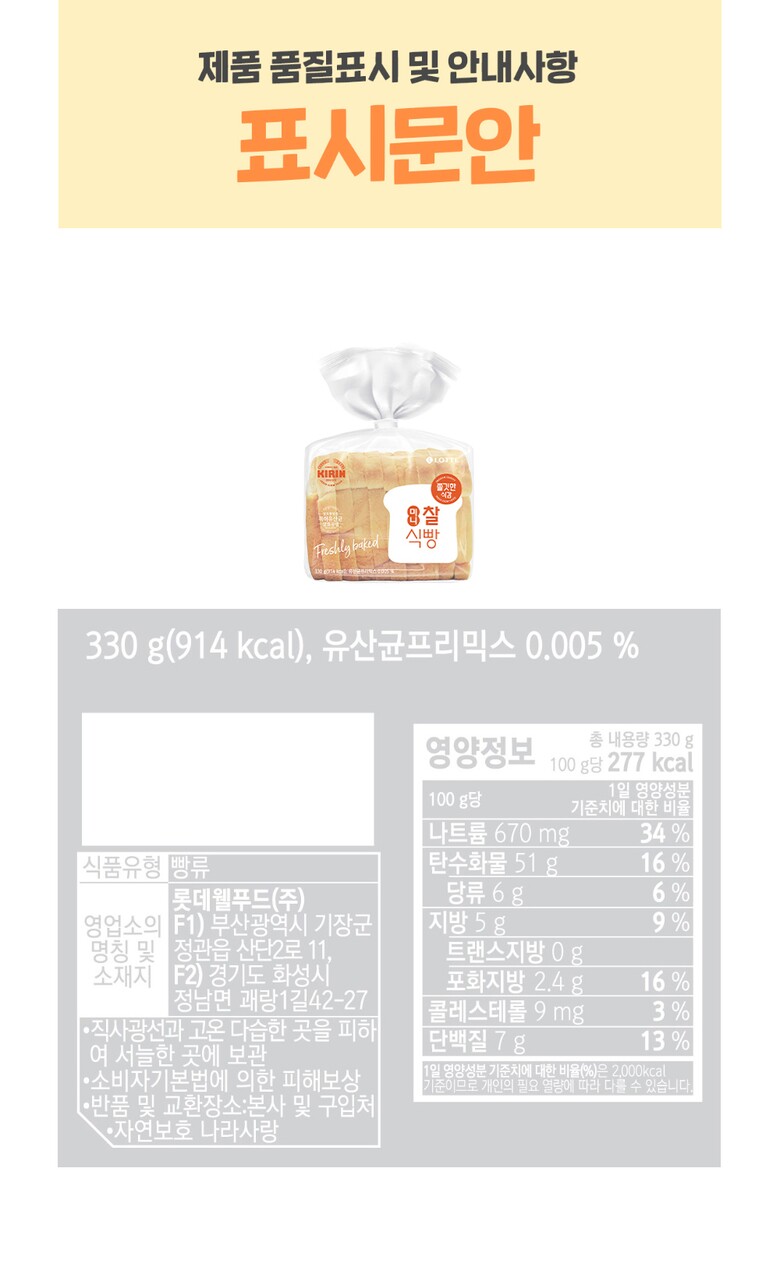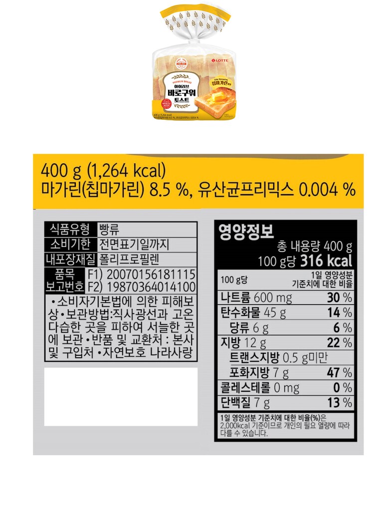 [롯데] 기린이네 식빵 4봉(미니찰식빵2, 바로구워토스트2)