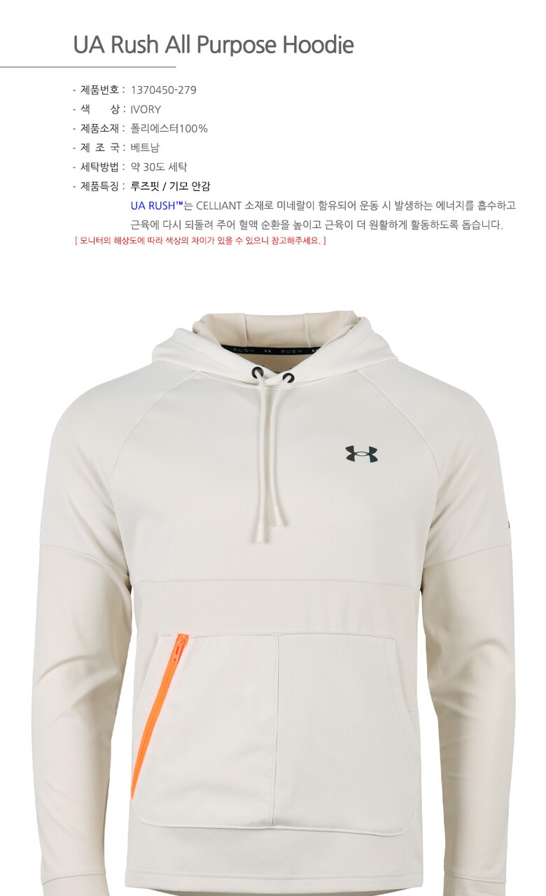 언더아머 남성 러쉬 웜업 후드 긴팔 티셔츠 1370450-279