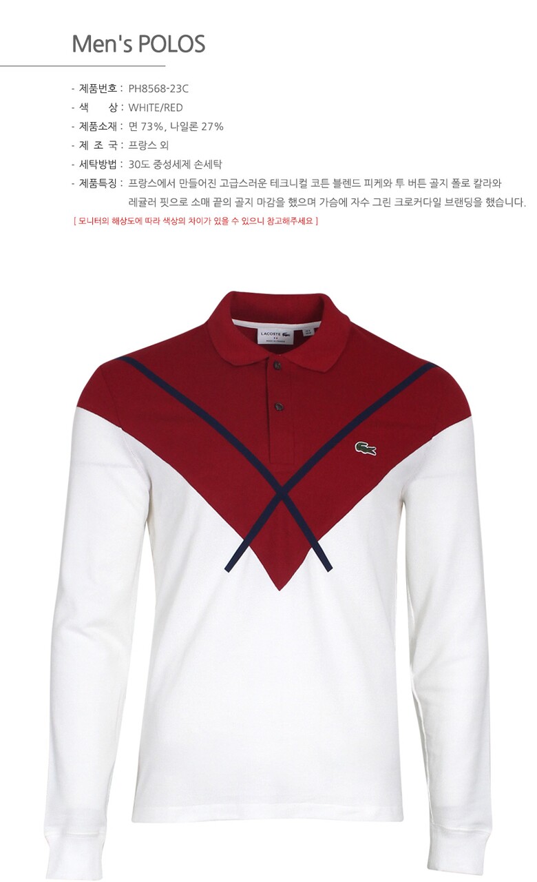 라코스테 남성 레귤러핏 폴로 카라 긴팔 티셔츠 PH8568-23C