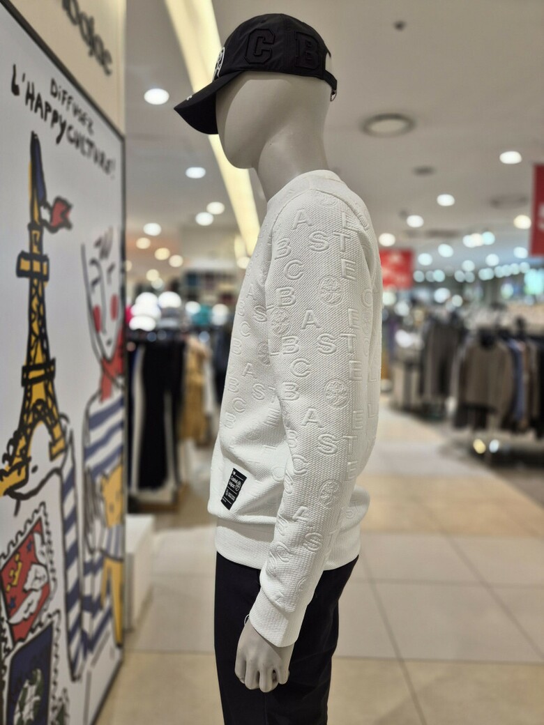 남성 블라종 엠보 자카드 라운드넥 맨투맨 셔츠 BGDSTL009 WH