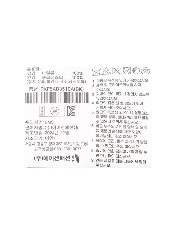 | 6. 세탁방법 및 취급시 주의사항 | 상품상세참조 |