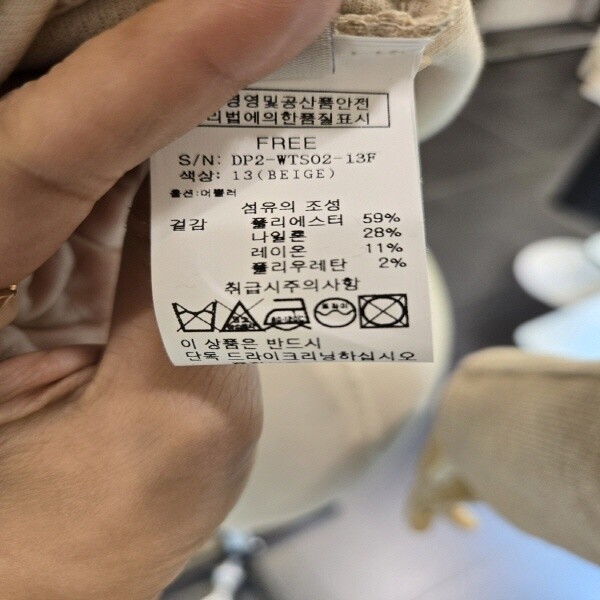 제품소재 : 폴리에스터59%,나일론28%,레이온11%,폴리우레탄2%