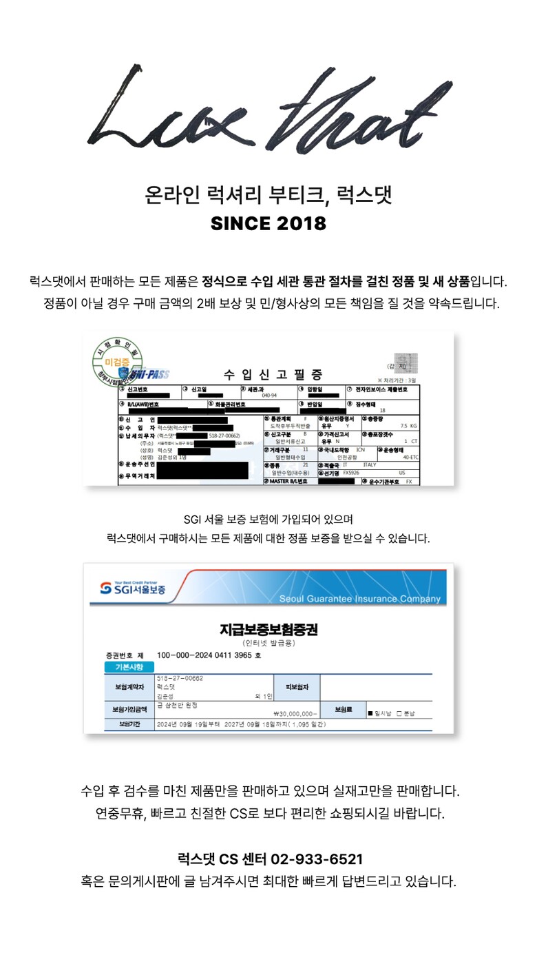 | 1. 제품 소재 (운동화인 경우에는 겉감, 안감을 구분하여 표시) | CALFSKINMETALRUBBER |