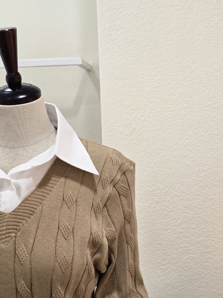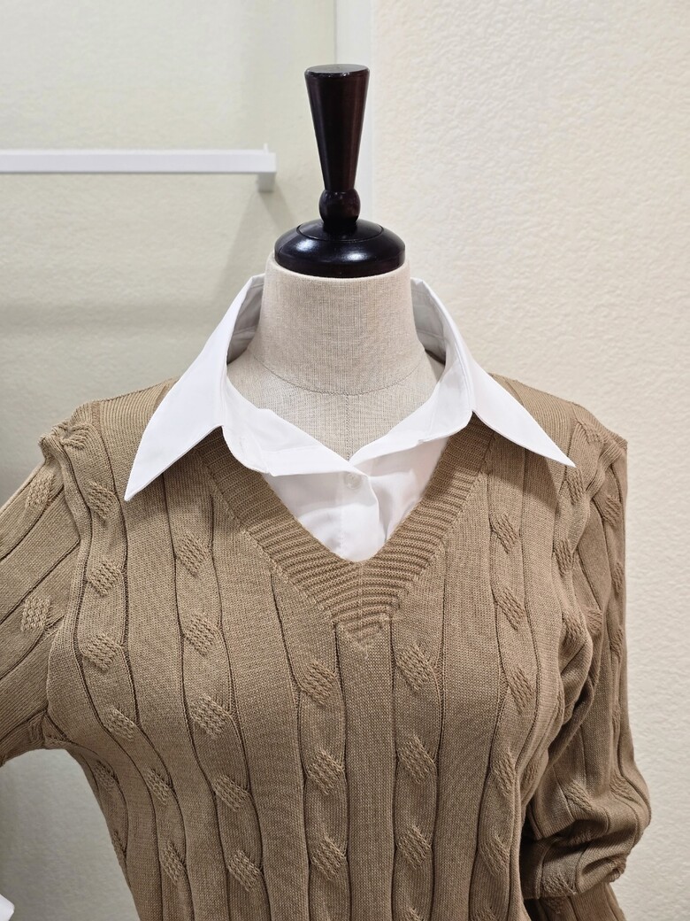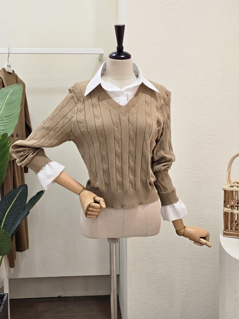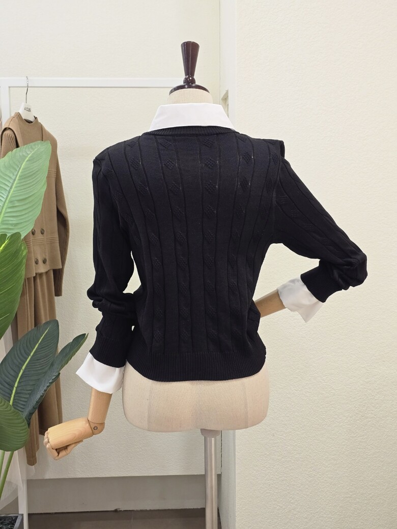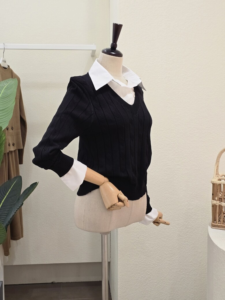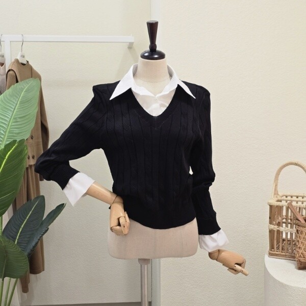 FS5A9KT5061_셔츠 카라 배색 브이넥 니트