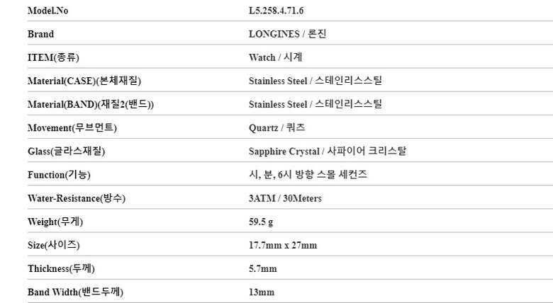 7. 주요 사양 | 스테인리스스틸 시계 쿼츠 |