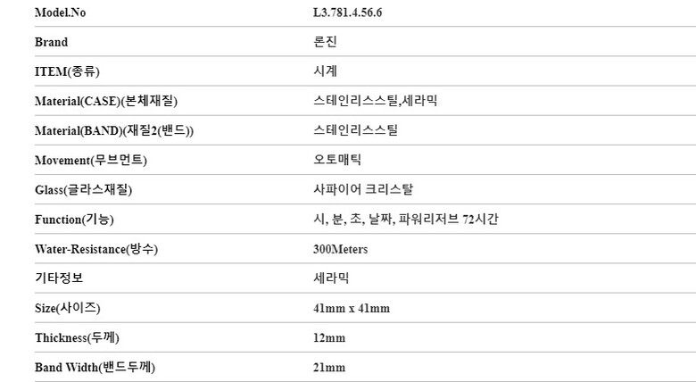 론진 시계 L3.781.4.56.6 하이드로콘퀘스트 세라믹 남성메탈시계 당일발송