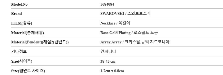 | 1. 소재 / 순도 / 밴드재질 | 로즈골드 / 쥬얼리 - 로즈골드 도금 / 팬던트 - 크리스탈 |