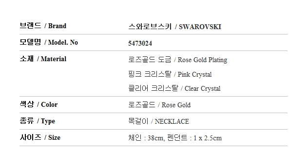 스와로브스키 목걸이 5473024 Dazzling Swan Y 핑크스완 여성목걸이 당일발송