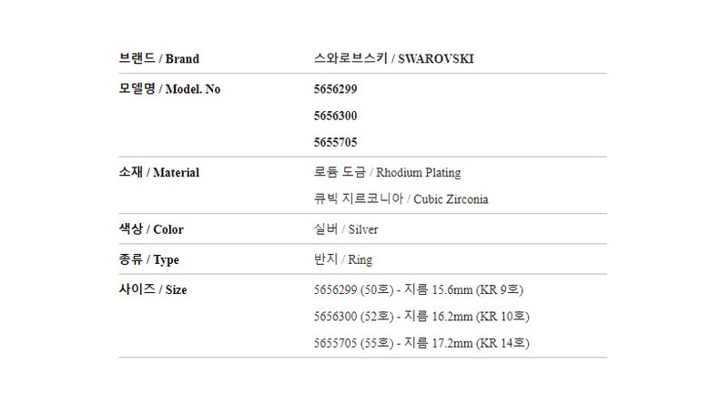 7. 주요 사양 | 로듐 도금 반지 |