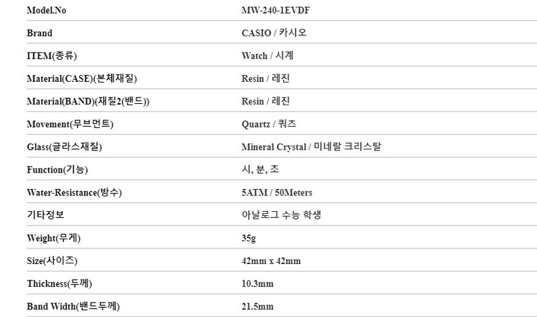 카시오 시계 MW-240-1EVDF 아날로그 저소음 우레탄시계 남자시계 남성시계 당일발송