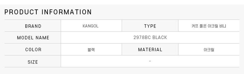 캉골 모자 2978BC BLACK (2978) 커프 풀온 아크릴 남성비니 여성비니 당일발송