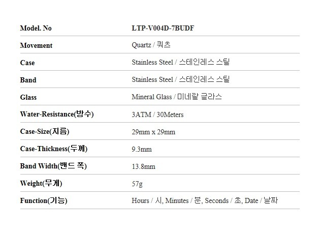 카시오 시계 LTP-V004D-7BUDF (LTP-V004D-7B) 아날로그 여성메탈시계 당일발송