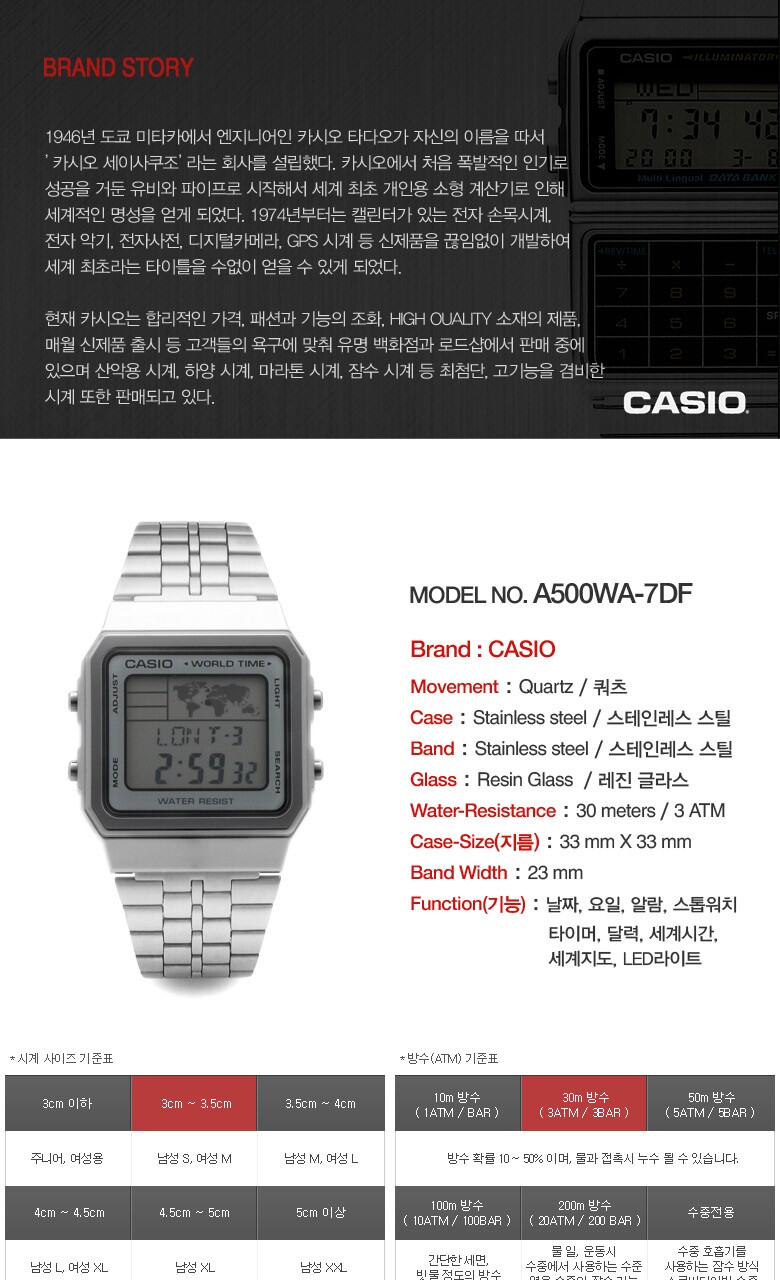 7-2. 시계 - 기능, 방수 등 상세정보참조