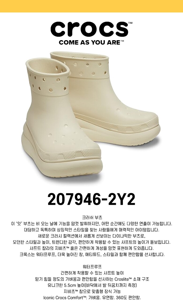 크록스 공용 크러쉬 부츠 레인부츠 키높이 플랫폼 207946-2Y2