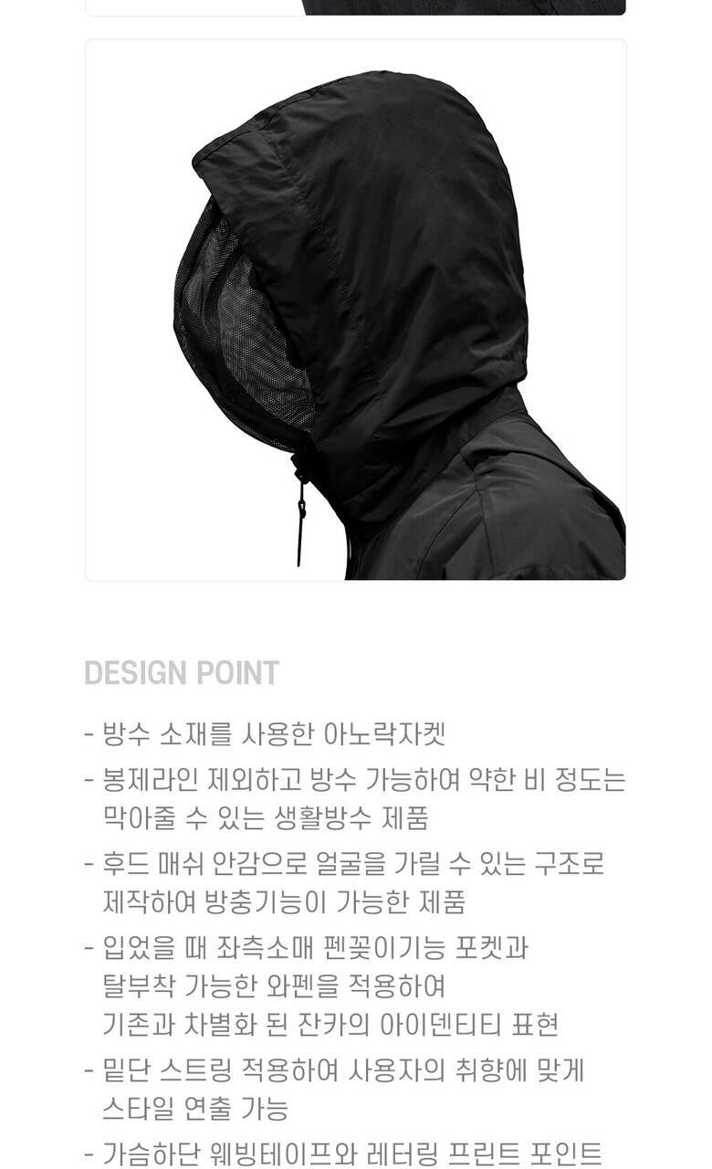 후드 안감으로 방충 기능을 더 한 신개념 아노락