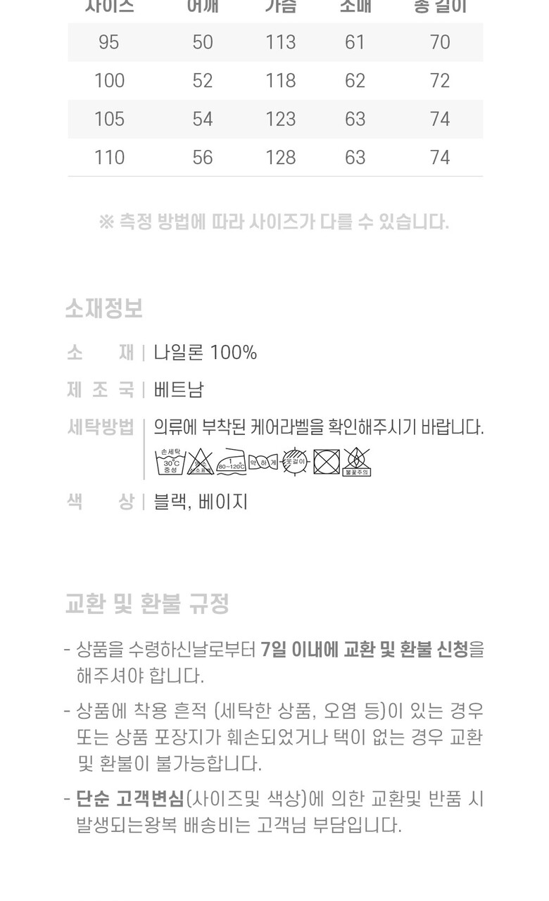 6. 세탁방법 및 취급시 주의사항 | 상품상세참조 |
