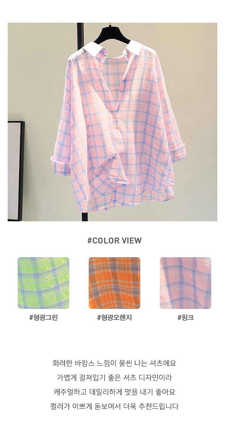 너트 린넨 네온체크 오버핏 셔츠