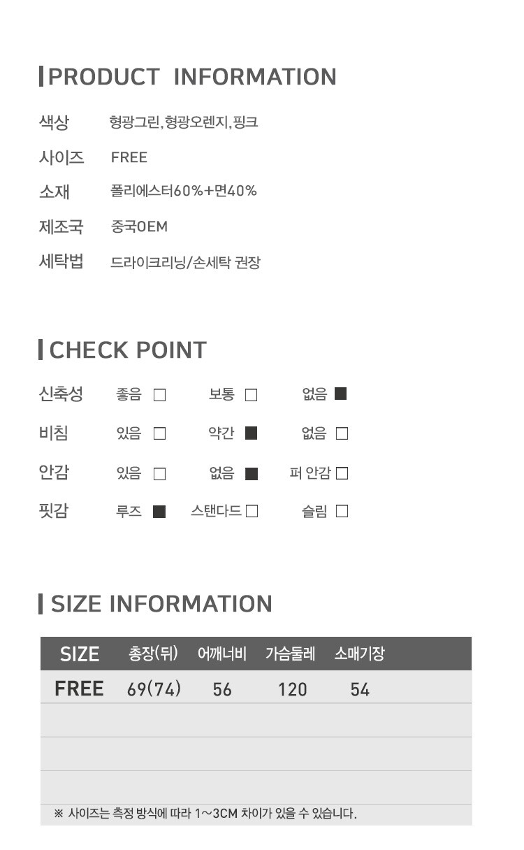 | 1. 제품 소재 (섬유의 조성 또는 혼용률을 백분율로 표시, 기능성인 경우 성적서 또는 허가서) | 상세페이지참고 |