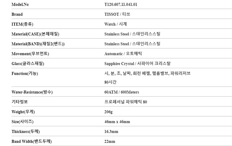| 7-2. 시계 - 기능, 방수 등 | WATER RESISTANCE - 60ATM(600Meters) |