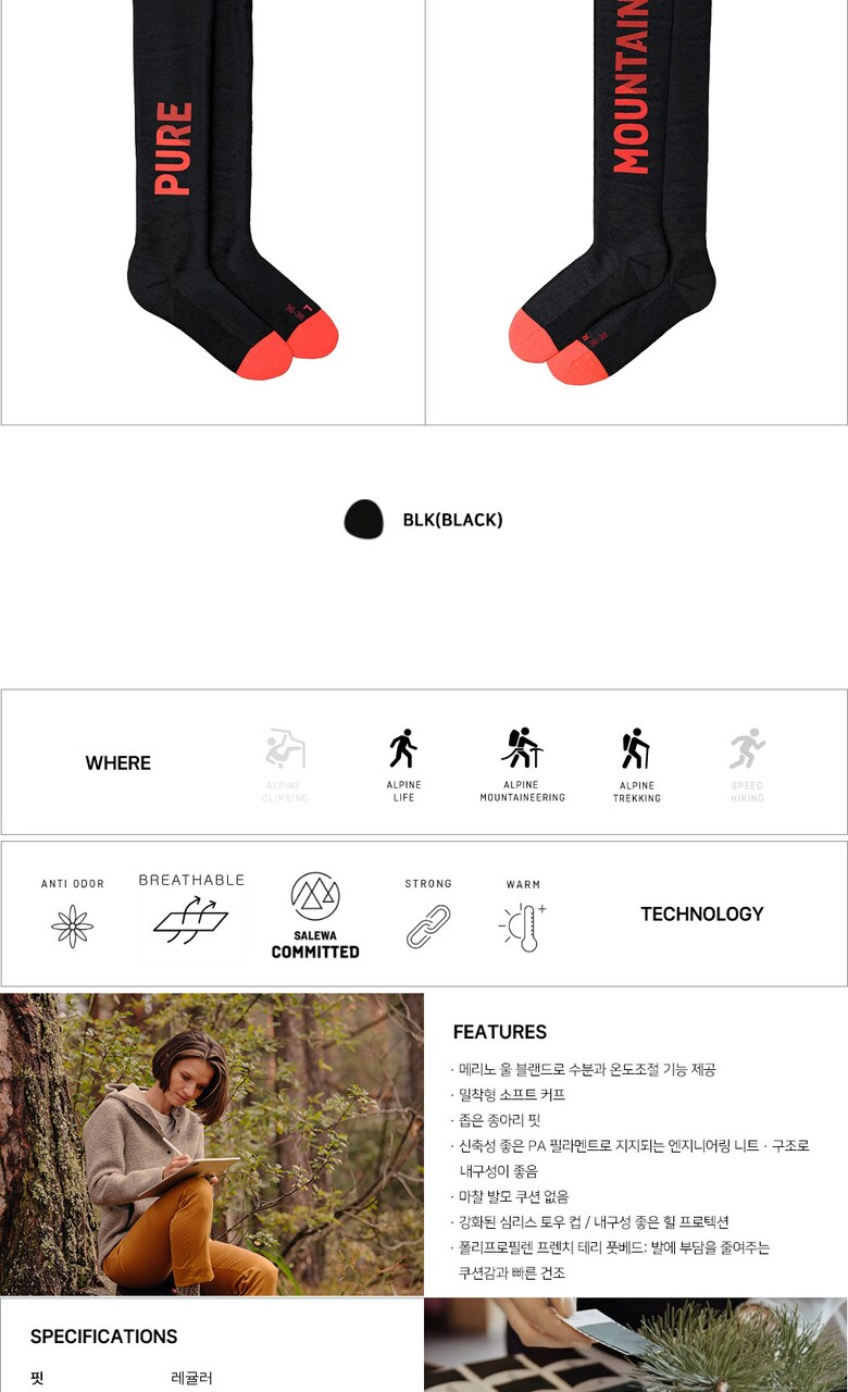 살레와 여성 셀라 퓨어 마운틴 트레이너 알파인 메리노 니 컷 삭스_O3SC952Q