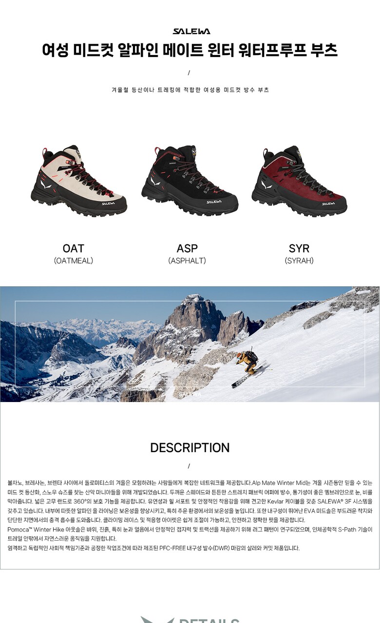 살레와 여성 미드컷 알파인 메이트 윈터 워터프루프 부츠 등산화_O3HM901Q