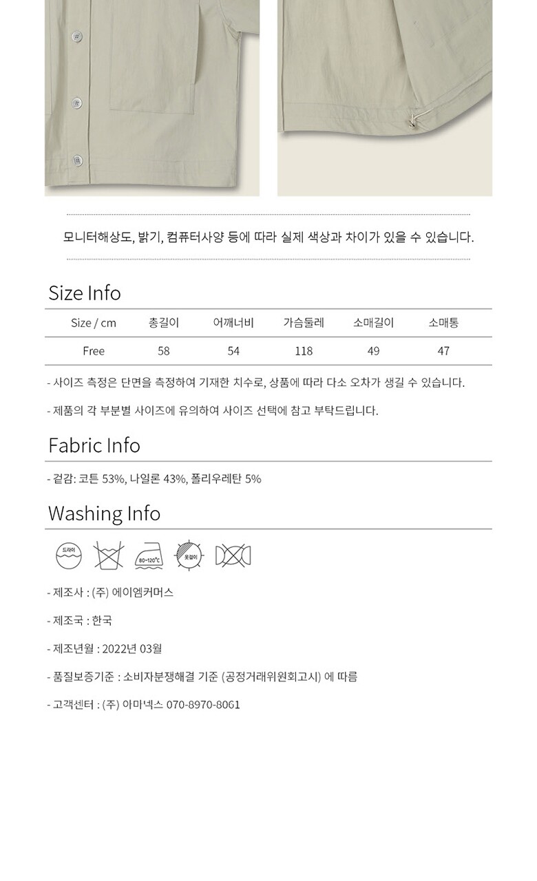 6. 세탁방법 및 취급시 주의사항 | 상세페이지및 라벨참조 |