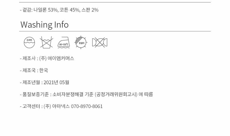 6. 세탁방법 및 취급시 주의사항 상세페이지및 라벨참조