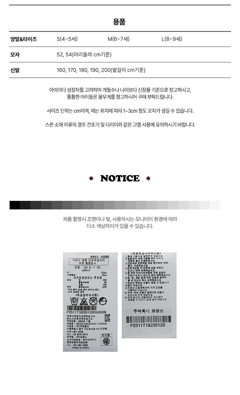 | 6. 세탁방법 및 취급시 주의사항 | 상품상세참조 |