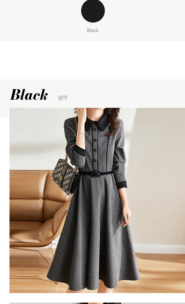 클라셰 블랙시크플레어원피스+벨트SET_B5S0103