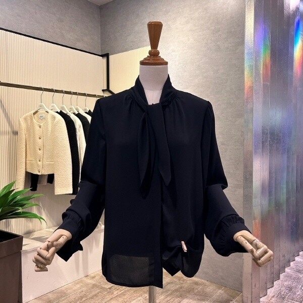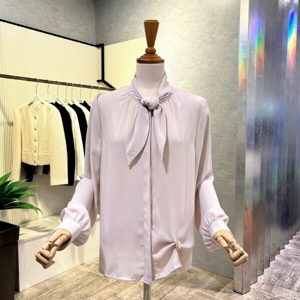 2024년 f/w 신상 타이 단추 블라우스 입니다.세련된 디자인이 포인트 아이템 입니다.