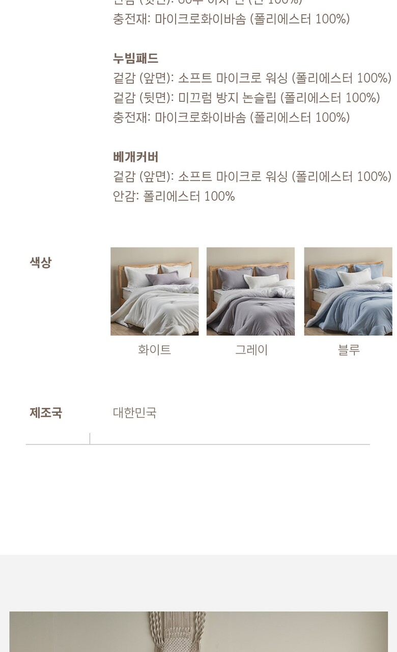 콤비네이션 소프트 마이크로 워싱 침구