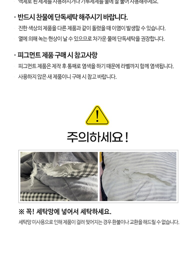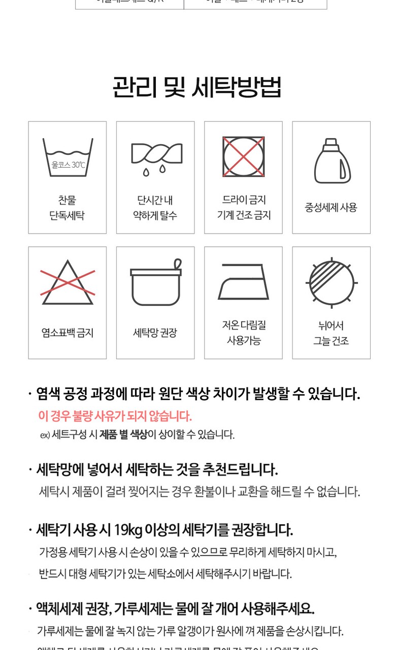 7. 세탁방법 및 취급시 주의사항 | (상품기본정보) 원산지 |