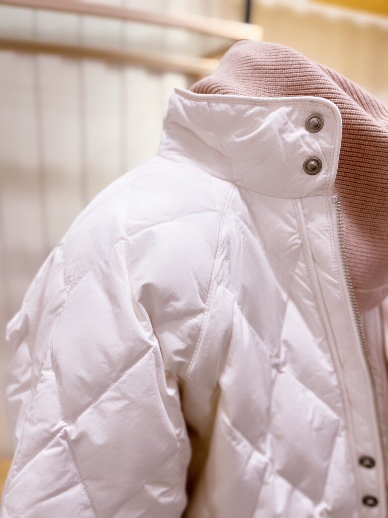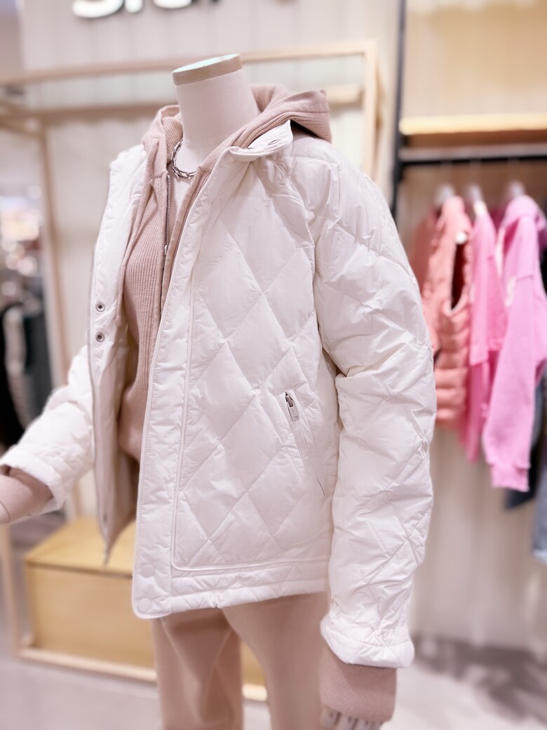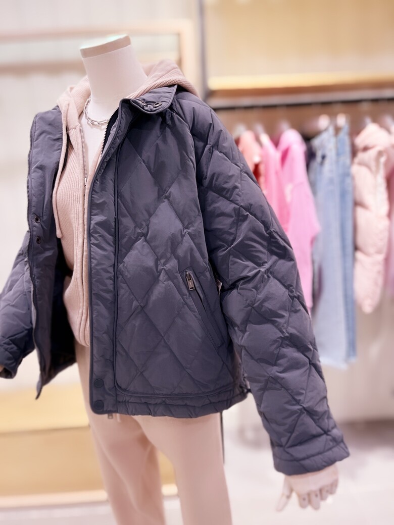 다운 충전재로 가볍고 보온성을 더하고 다이아퀼팅으로 고급스러움을 연출 하실 수 있습니다.