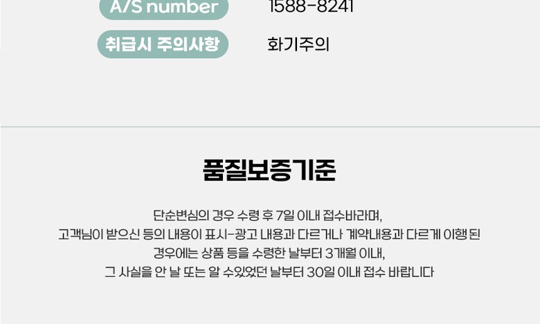 7. 품질보증기준 | 관련법 및 소비자분쟁해결기준에 따름 |