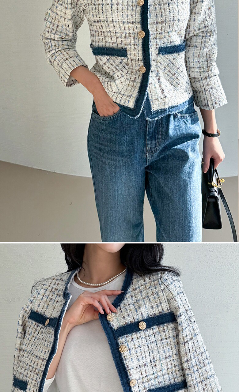 데님 트리밍 트위드 자켓_M2502JK004A