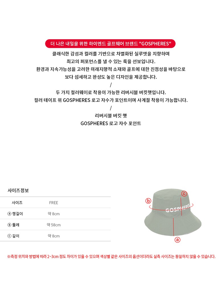 고스피어 GOSPHERES UNISEX ESSENTIAL REVERSIBLE BUCKET HAT_PM2FBH52