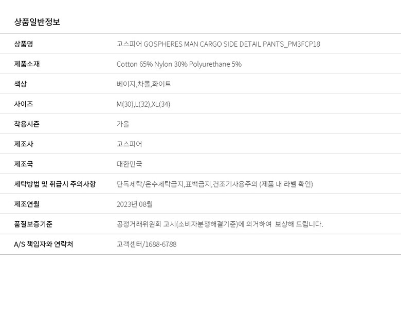 | 6. 세탁방법 및 취급시 주의사항 | 단독세탁/온수세탁금지,표백금지,건조기사용주의 (제품 내 라벨 확인) |