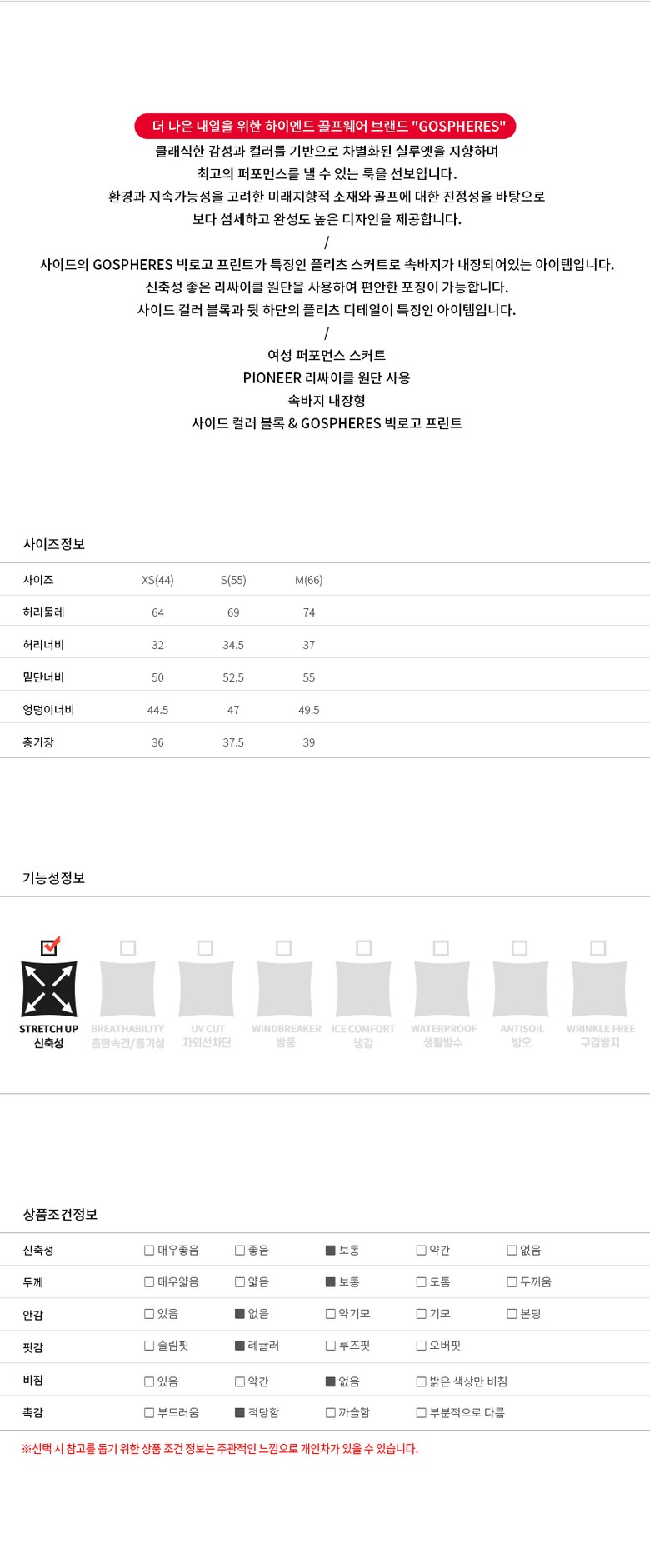 3. 치수 | XS(44),S(55),M(66) |
