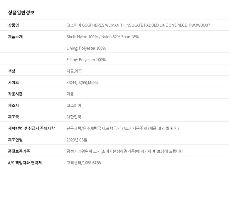 | 3. 치수 | XS(44),S(55),M(66) |