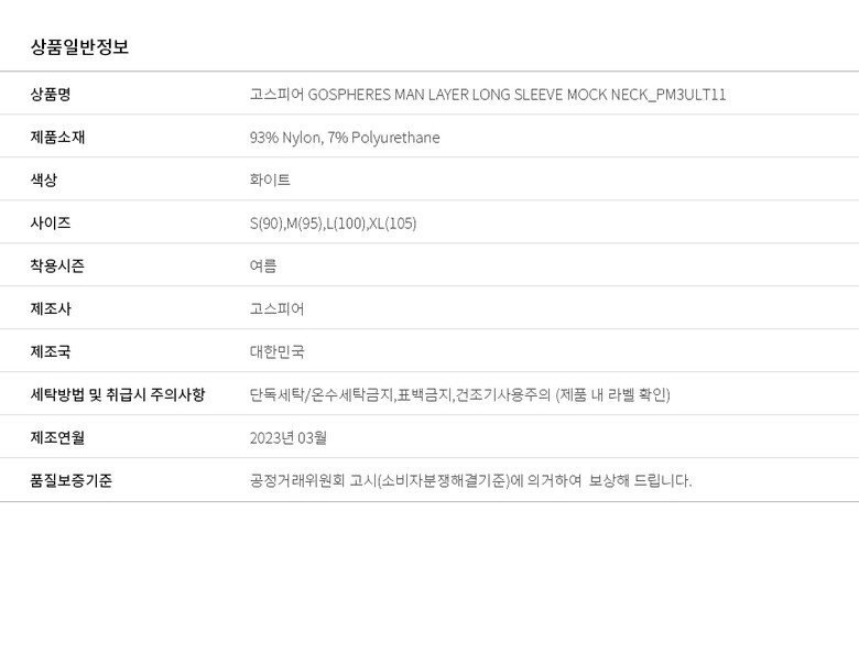 | 3. 치수 | S(90),M(95),L(100),XL(105) |