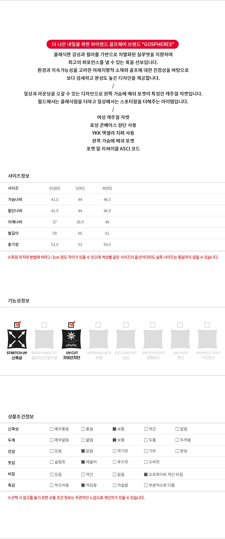 3. 치수 XS(85),S(90),M(95)