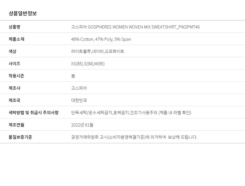 고스피어 GOSPHERES WOMEN WOVEN MIX SWEATSHIRT_PW2PMT46