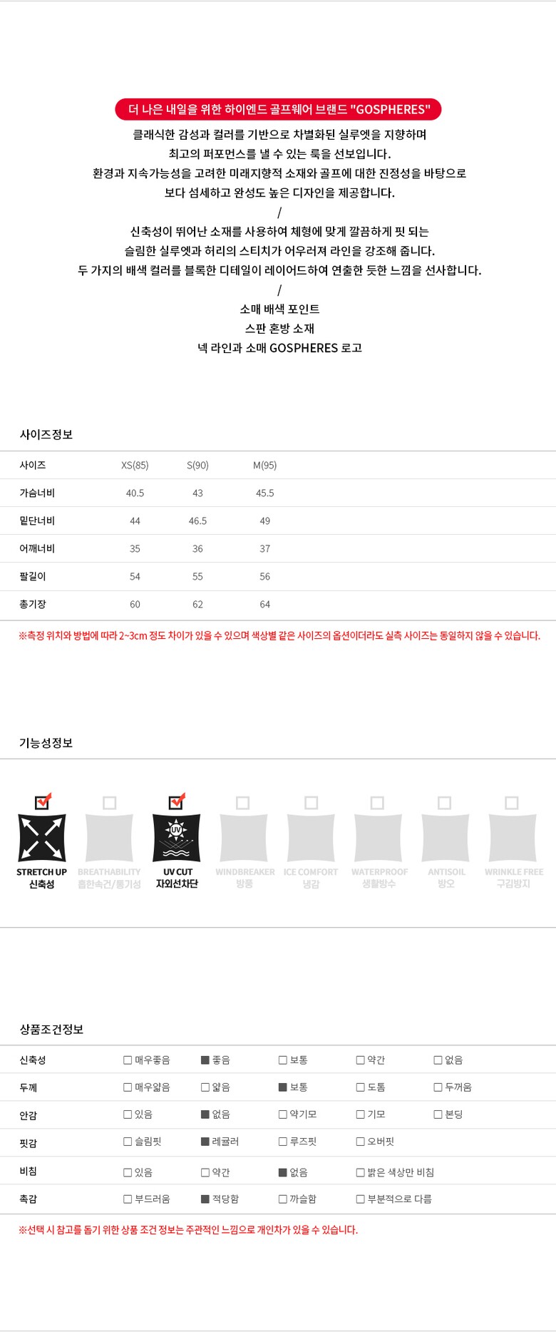 | 3. 치수 | XS(85),S(90),M(95) |