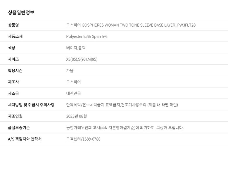 | 6. 세탁방법 및 취급시 주의사항 | 단독세탁/온수세탁금지,표백금지,건조기사용주의 (제품 내 라벨 확인) |