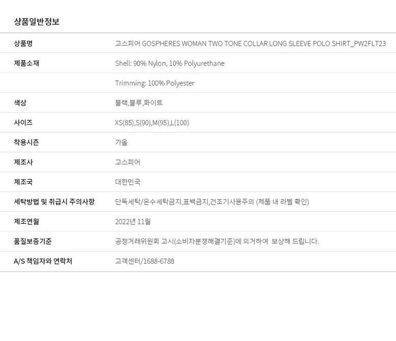 고스피어 GOSPHERES WOMAN TWO TONE COLLAR LONG SLEEVE POLO SHIRT_PW2FLT23